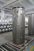 All our air to water heat pump installations require buffer tanks and it is also a common option to pre-heat domestic hot water using indirect tanks. Traditionally buffer tanks for closed-loop hydronic installations are made from carbon steel while indirect tanks used for potable water are made from stainless steel. The larger the tanks or more coils they contain the higher the price - something that was driving the cost of installations higher than we would like to see. The solution was designing and bringing in our own competitively priced line of 316L & Duplex stainless steel water tanks, starting with 80, 105, 120 & 200 USG 4 port buffer tanks and single coil 40 USG and double coil 120 USG indirect tanks. Our latest innovation in this product category is a pragmatic solution to reducing domestic hot water heating costs without the high complexity and cost usually associated with doing it properly. It's a 120 USG Stainless Steel tank with an internal 40 USG tank resulting in 80 USG of hot water buffer storage and 40 USG of preheat for DHW - all you need to do is connect your 3/4" potable cold line into the bottom of the inner tank and feed the preheated water to a conventional tank or tankless heater. In summer chilled water mode the buffer tank will not preheat DHW but instead uses economizer mode by pre-cooling chilled water tank with incoming cold potable water; alternatively you may choose to use two buffer tanks or bypass the preheat in summer.